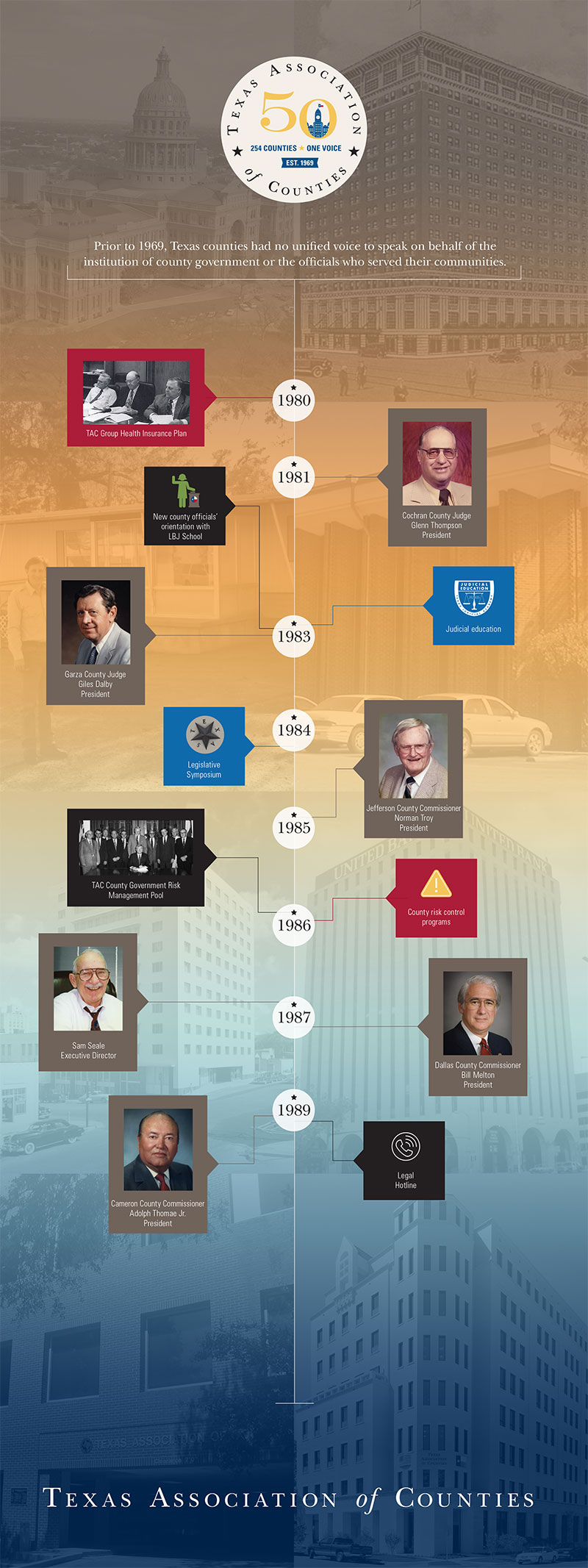 The TAC County Government Risk Management Pool was created in response to a growing crisis in the availability of affordable liability insurance for counties. The number of counties without general liability coverage had grown from about 10% in May 1985 to 28% in Jan. 1986.